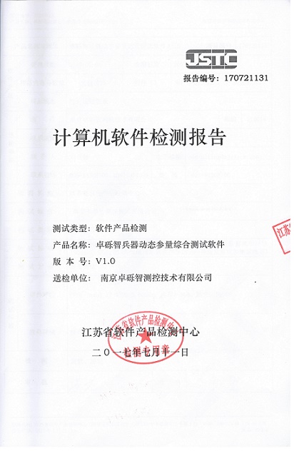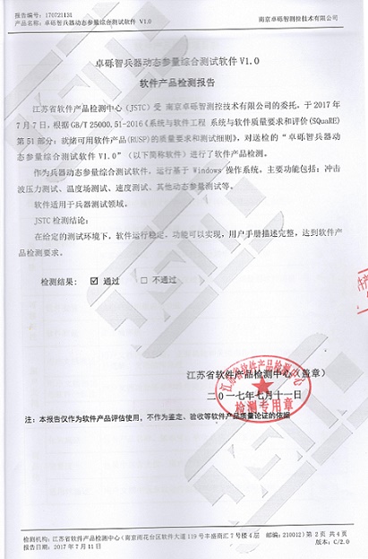 公司的草莓视频APP污下载兵器動態參量綜合草莓视频黄版下载軟件順利通過江蘇省軟件產品檢測中心的檢測。